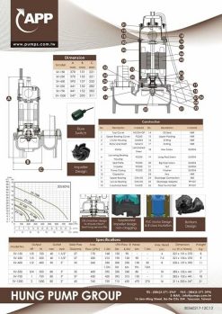 - Cánh bơm đơn được thiết kế ngăn chặn tắc nghẽn, có thể hút được chất thải rắn và dạng sơ…