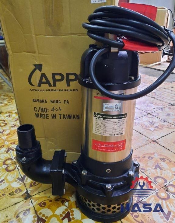 Máy bơm chìm nước thải APP KHL-50T giúp thoát nước thải trong hầm nhà, nước ngập úng, xử lý nước thải nhà máy, nhà ở…Nhờ được làm từ inox nên máy có độ bền cao, khả năng hoạt động mạnh mẽ, tiết kiệm điện năng.